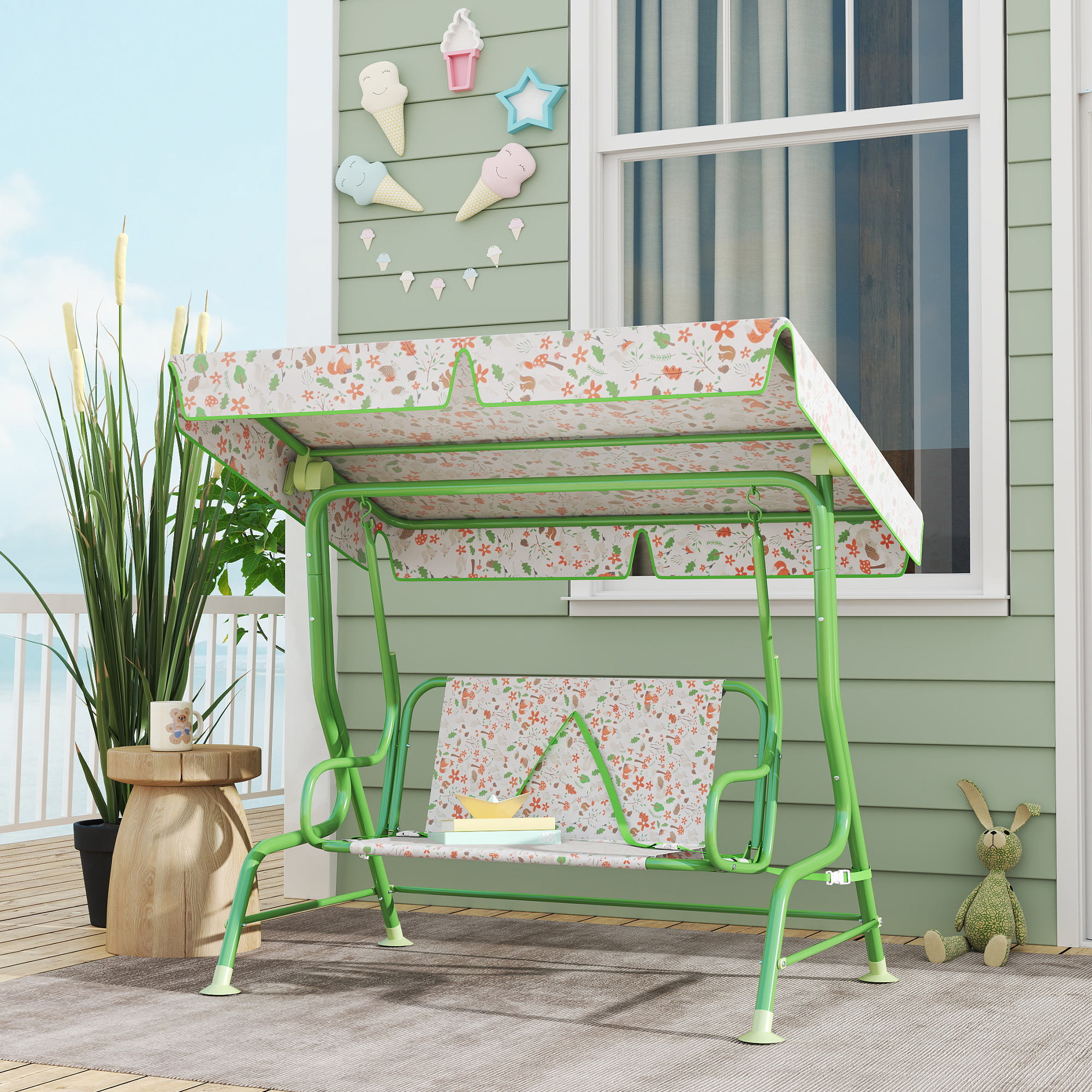 AIYAPLAY Kids Garden Swing Chair with Adjustable Canopy, Safety Belt, 2 Seater Hammock Swing Bench for Patio, Porch, Green