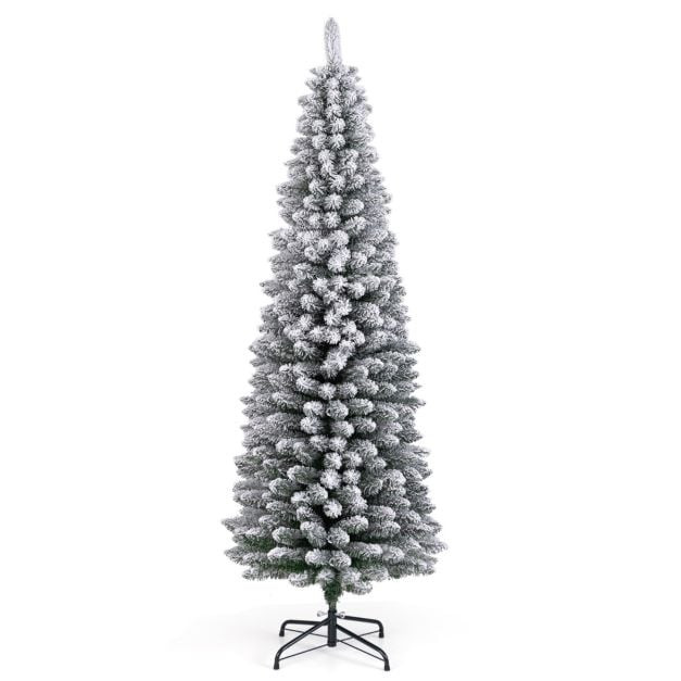 The 240/328/460 dense branch tips of our artificial Christmas tree boast bullet-shaped design, giving it an attractive appearance. The snow flocked design enhances the lifelike appearance, resembling a freshly snow-dusted tree straight out of a winter fairy tale. Crafted from flame-retardant and anti-fading PVC material, this Xmas tree ensures safety for your household and guests. With a cross-shaped metal stand, the slim seasonal decoration tree offers superior stability to prevent any wobbling. The smart pencil shape design of this tree makes it ideal for fitting into limited corners without compromising on the fullness of the tree. Plus, the detachable 2/3-section design of this tree makes both assembly and storage a breeze.