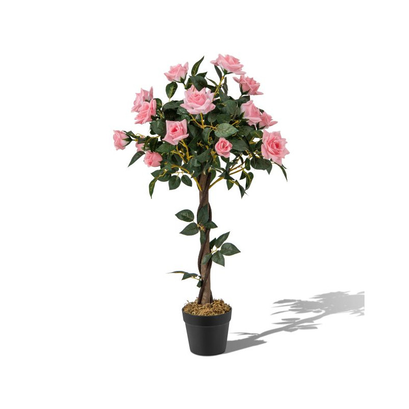Vivid and Full-Bodied Appearance: The artificial flower tree features 21 pine roses and 259 verdant leaves, which mimics the appearance of a real rose topiary tree, adding a touch of nature and elegance to your home. And there exist simulated PE rattans and a real wood trunk, looking vivid.
