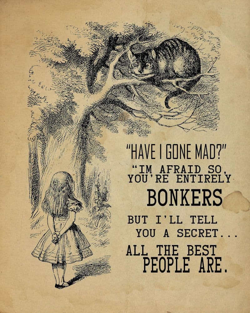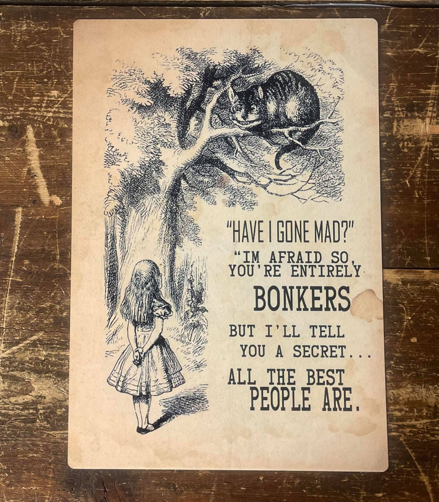 Alice in wonderland , Have I Gone Mad , Entirely Bonkers Brown - Metal Advertising Wall Sign