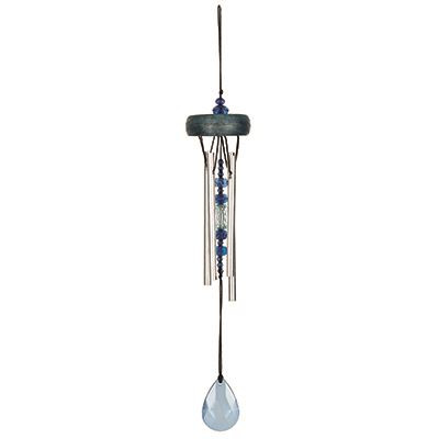 This wonderful blue wind chime has blue crystals for the clapper, a blue crystal wind catcher and a blue finished ash wood top piece.