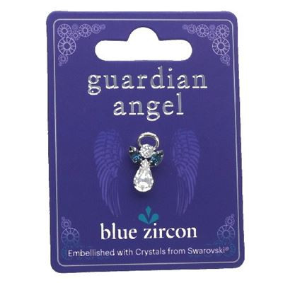 product description – Blue Zircon Guardian Angel Pin with Swarovski Crystal.