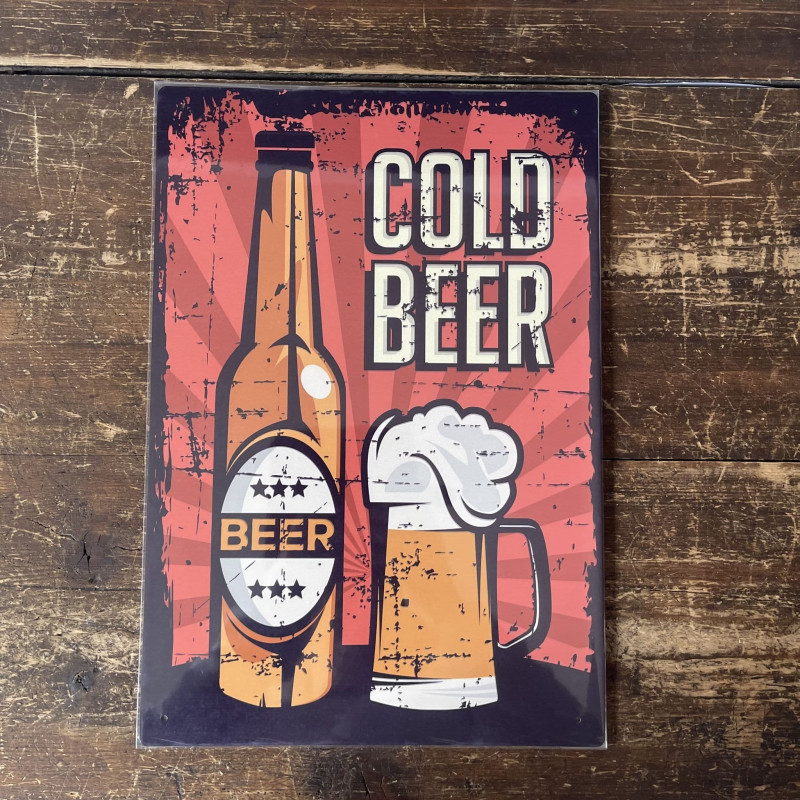 Bottle Beer Cold Bar - Metal Vintage Wall Sign