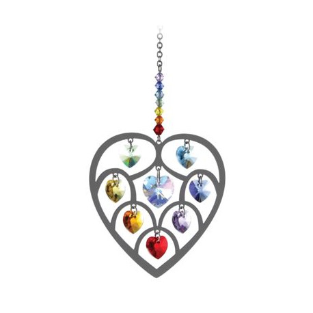 This stunning decorative Chakra Heart is made using only the highest quality Swarovski Crystals, using the colorful and attractive chakra, or rainbow, colours, placed in a mirrored heart shape hanger.