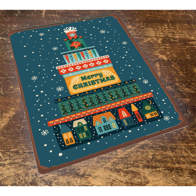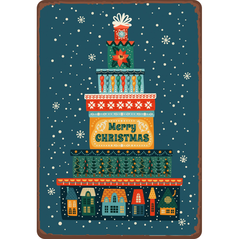 Christmas Cake Illustrations - Metal Vintage Wall Sign