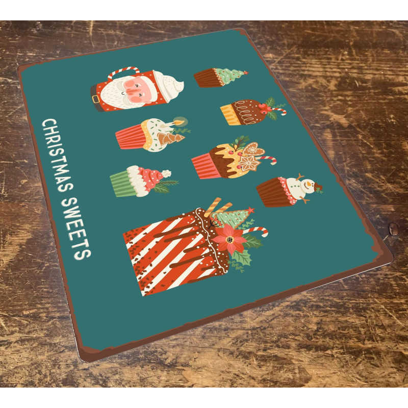 Christmas Sweets Illustrations - Metal Vintage Wall Sign