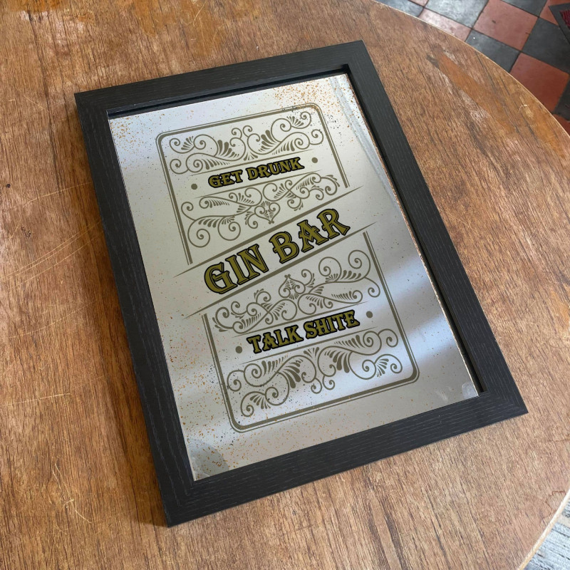 Gin Bar Get Drunk Talk Shite Mirror - Mirroed Metal Wall Sign