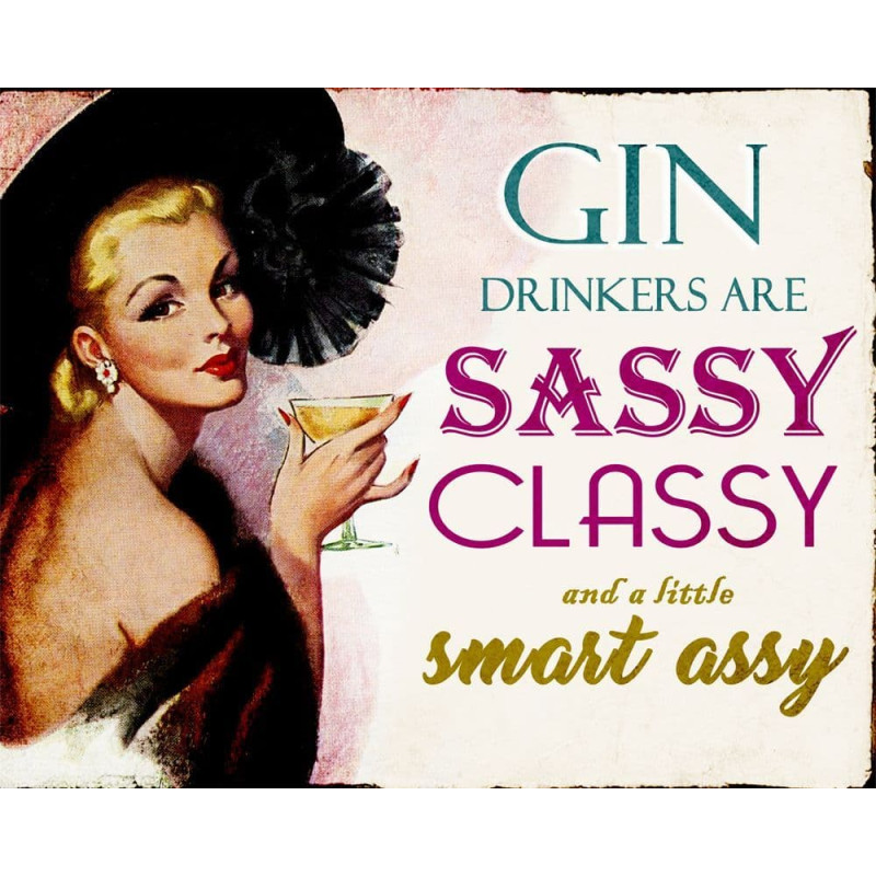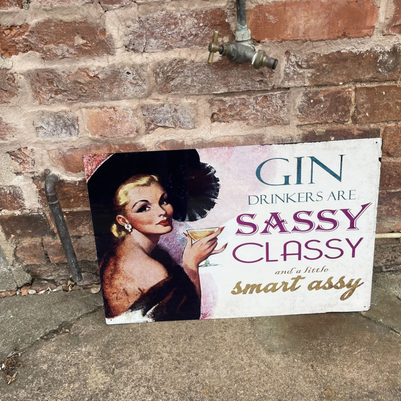 Gin Drinker are Sassy Classy little smart Assy - Metal Humour Wall Sign