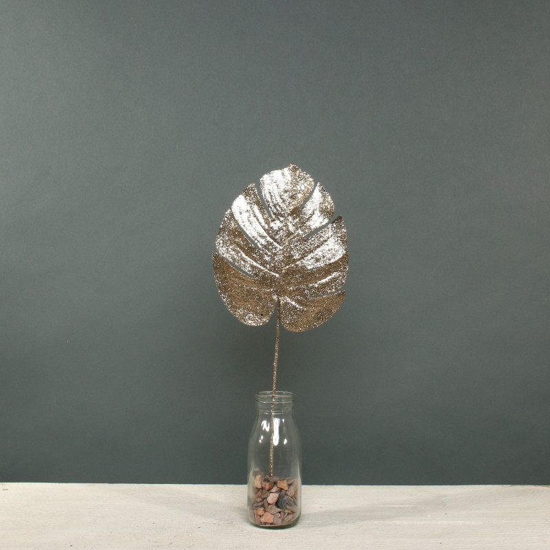 Glitter Monstera leaf sml Champagne