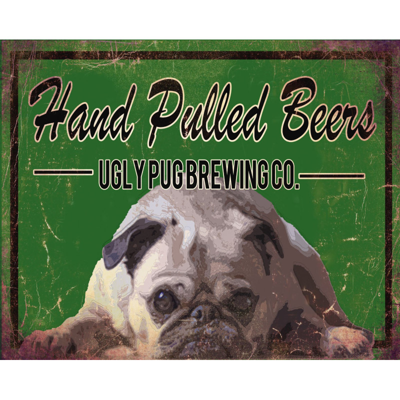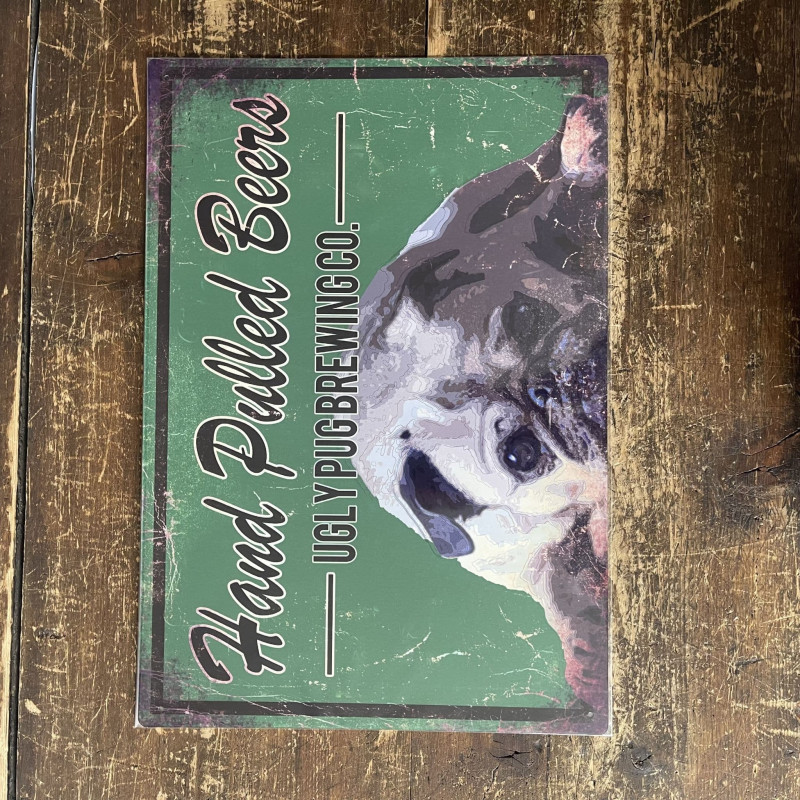 Hand Pulled Beers Ugly Pug Brewing Co Brewery Style Animal - Metal Advertising Wall Sign