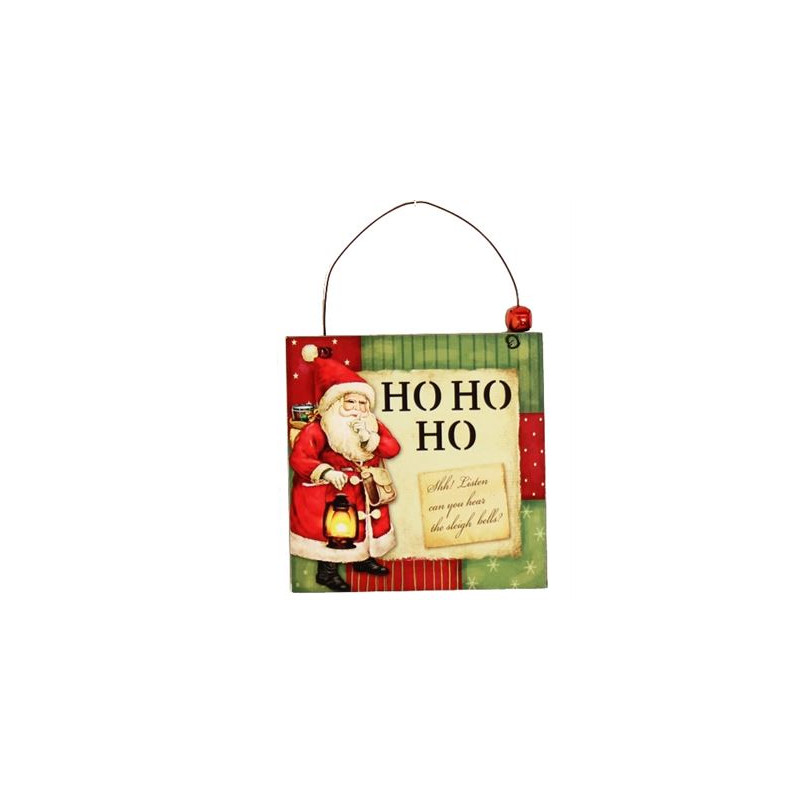 This charming hanger is finished with a little red bell attached to the wire and words reading ‘HO HO HO Shhh! Listen, can you hear the sleigh bells?’.