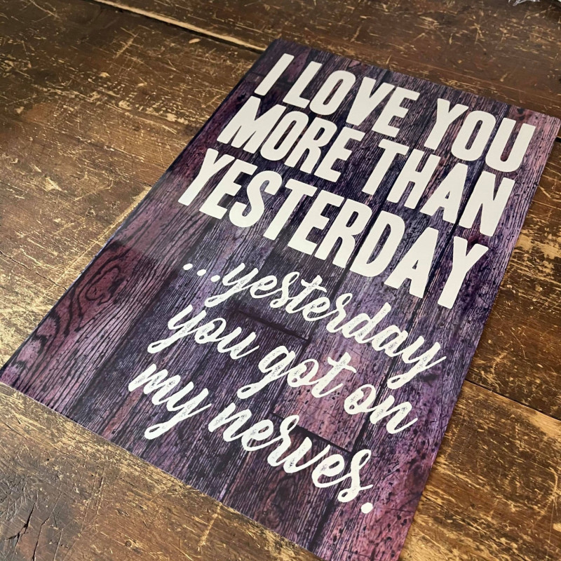 I love you more than yesterday, yesterday you got on my nerves Metal Travel Wall Sign