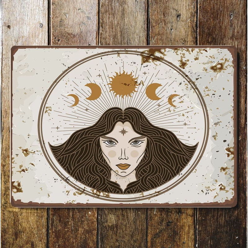 moon sun woman boho spiritual tarot reading Metal Wall Sign Plaque