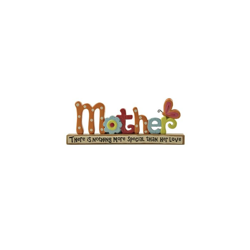 This delightful resin word block is made up of a brown base decorated with black letters that read ‘There is nothing more special than her love’.