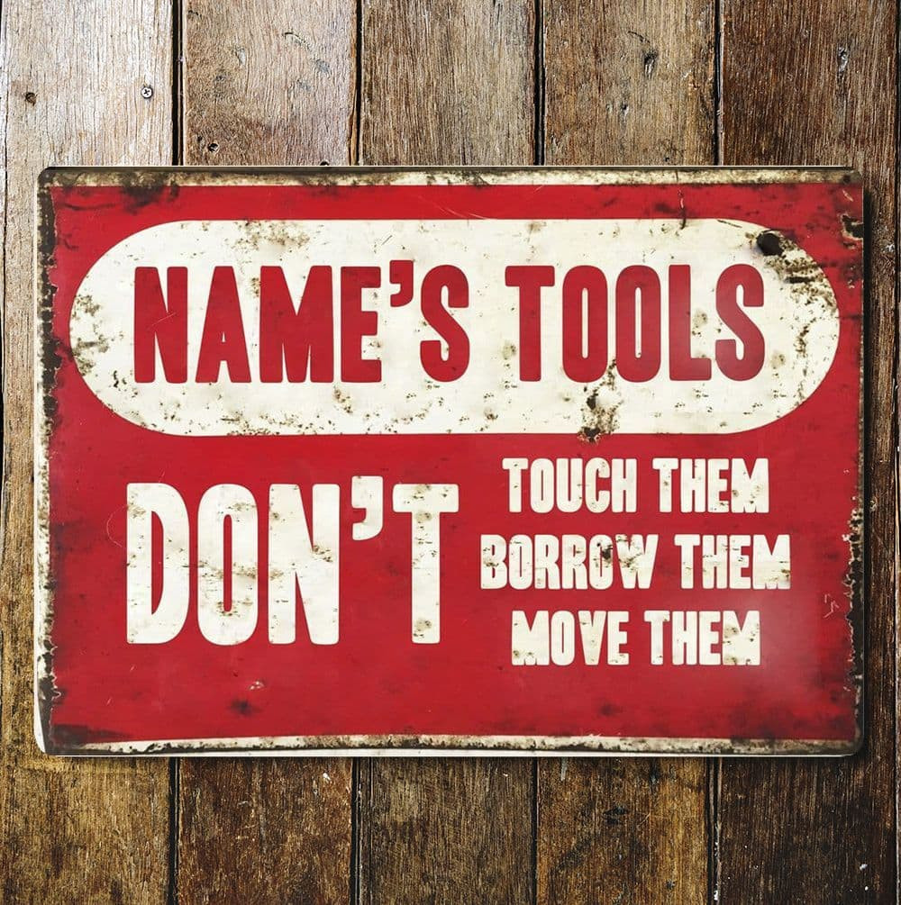 Names Tools Shed Door Sign Personalised With Any Name / Text - Metal Art Wall Sign