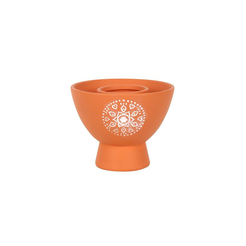 Large terracotta smudge bowl featuring a beautiful Mandala design.