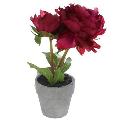 Add a stylish touch to your interior design with this beautiful red Peony plant in a grey plant pot, which has an incredibly realistic appearance and is approximately 18cm tall.