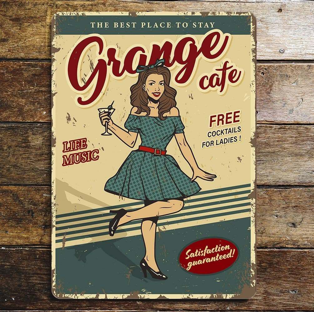 Retro Grange Cafe - Metal Wall Sign Plaque