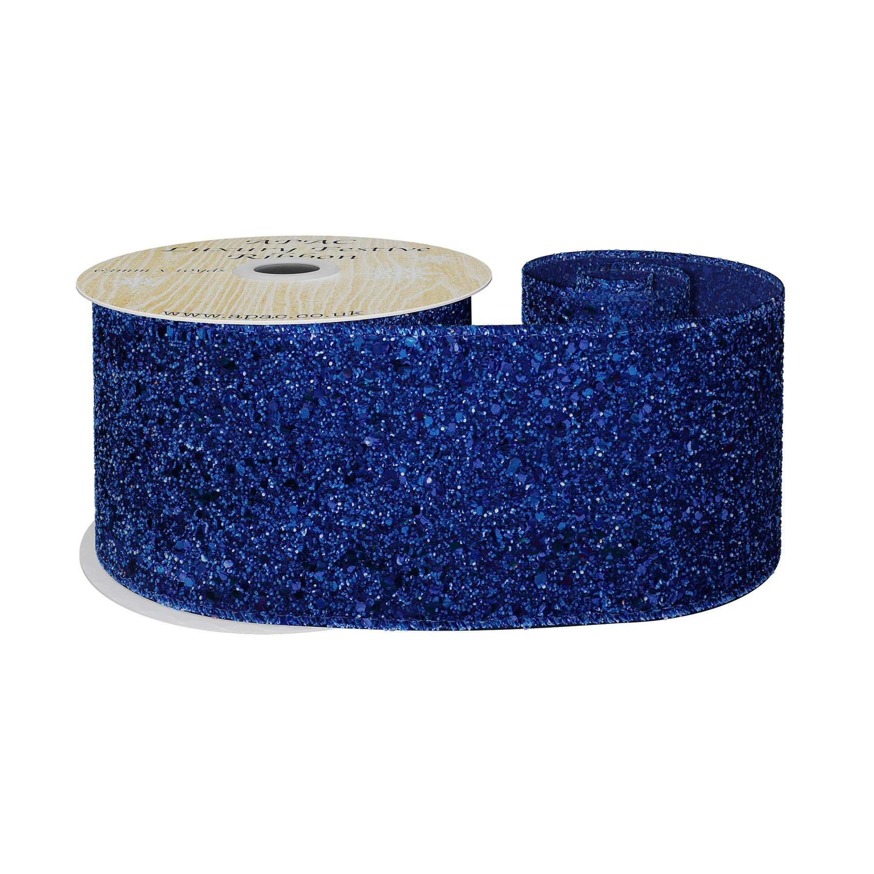 Royal Blue Glitter Wired Ribbon (63mm x 10 yards)