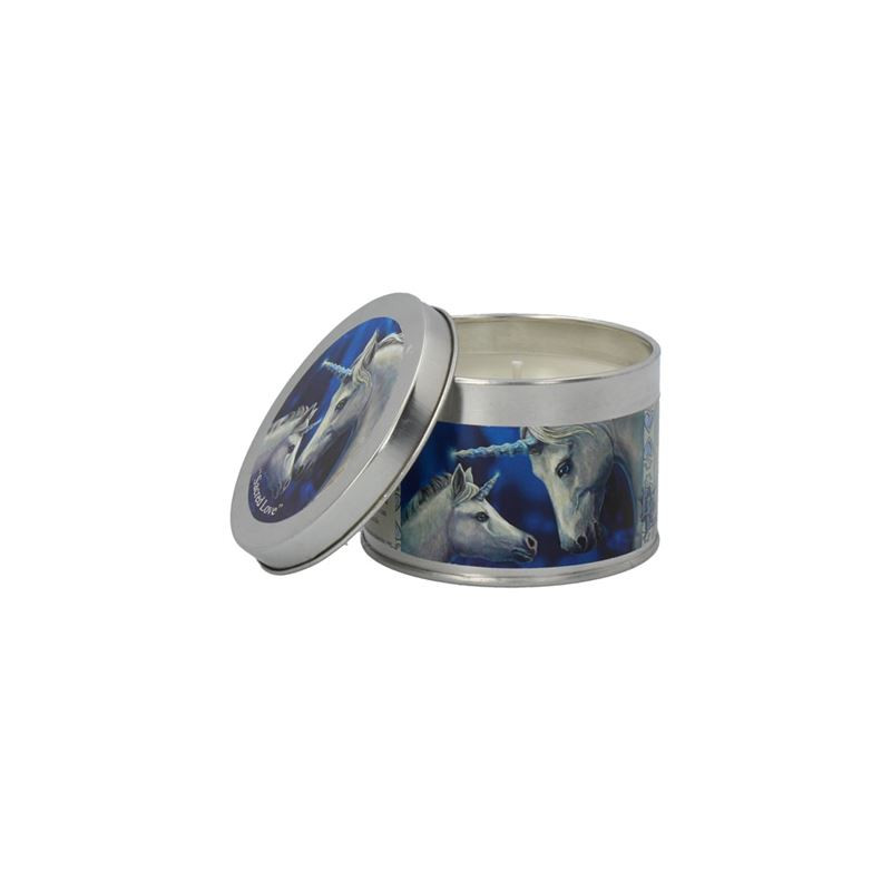 The top of the tin shows two white unicorns gazing into each other’s eyes – a mare and her foal.