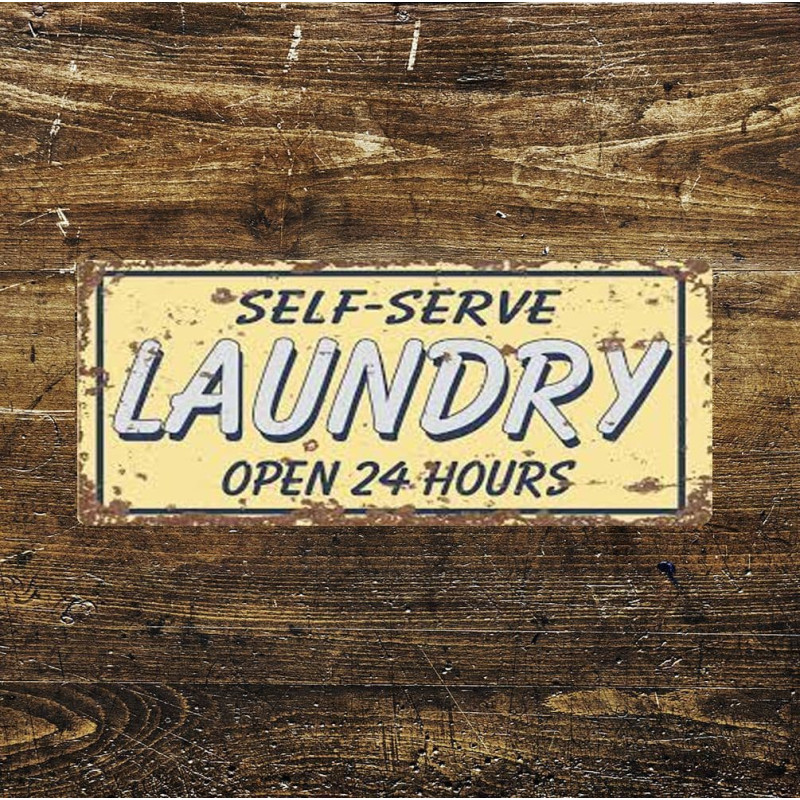 Self Serve Laundry Open 24 Hours - Metal Wall Sign