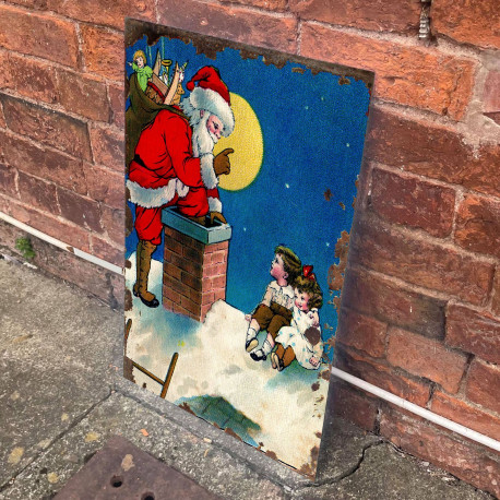 Vintage Santa Chimney Christmas - Metal Vintage Wall Sign