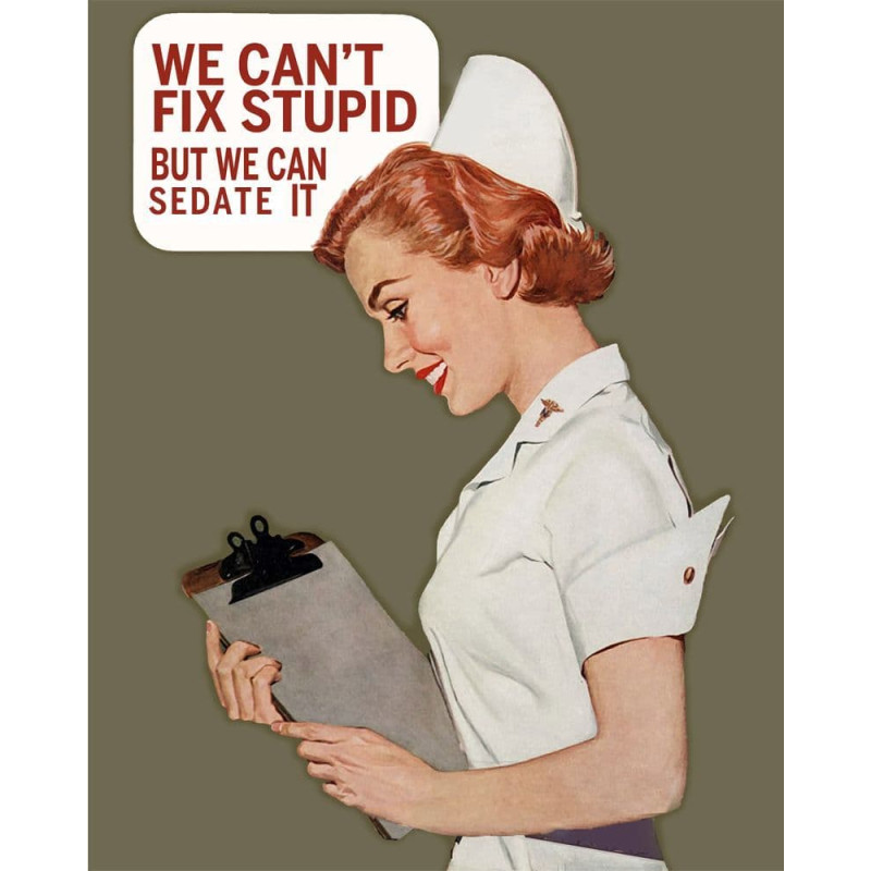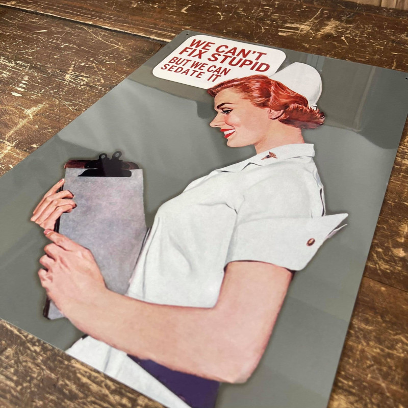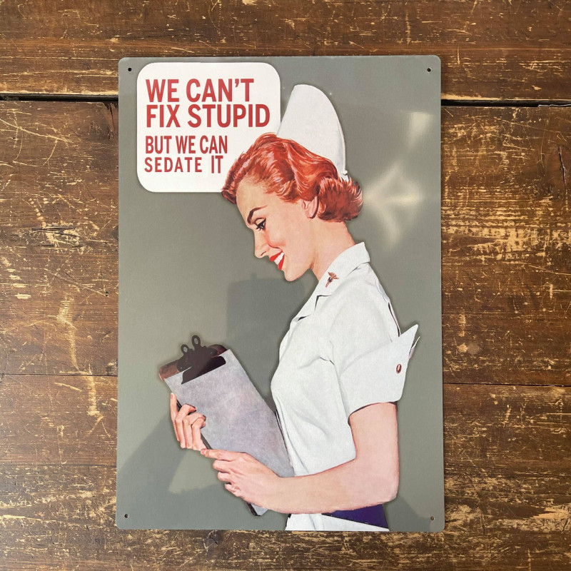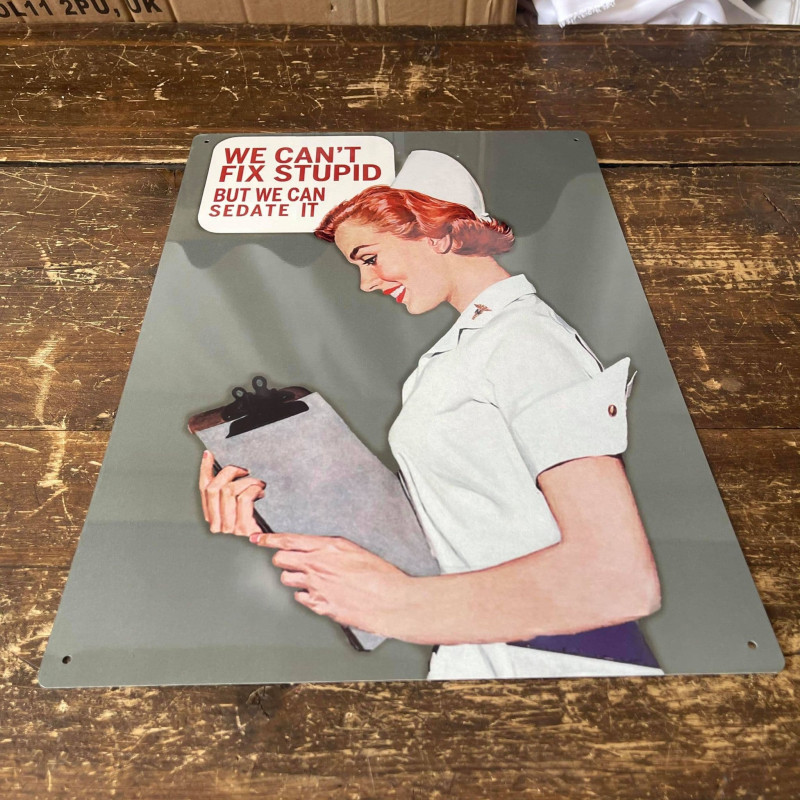 We can't Fix Stupid But We Can Studate it - Metal Humour Wall Sign