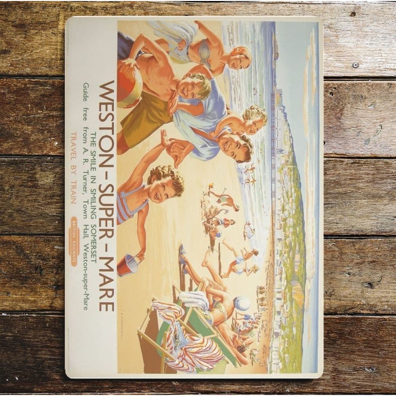 Weston-Super-Mare the Smile In Smiling Somerset Britsish Railways - Metal Travel Wall Sign -