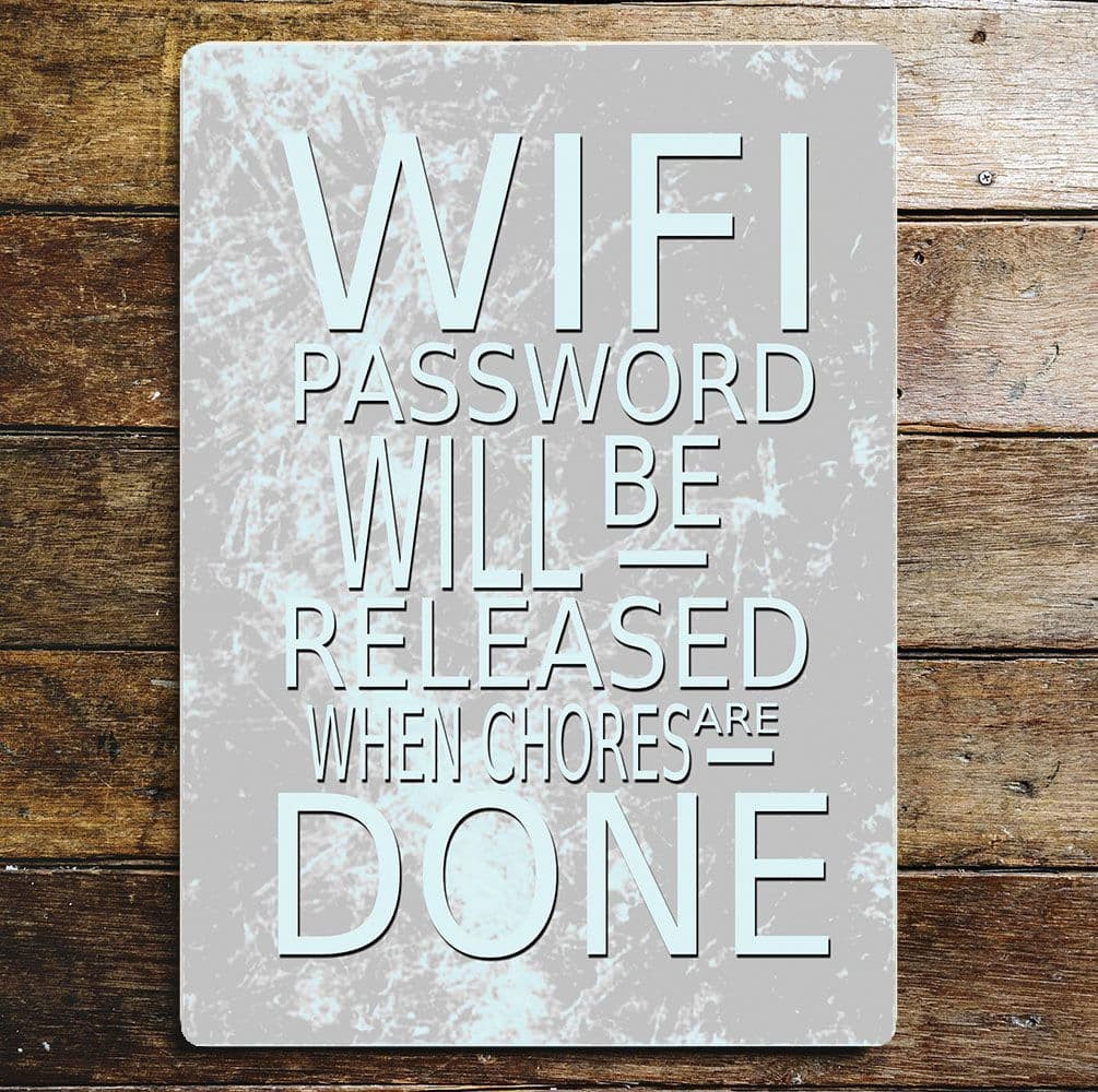 Wifi Password Will Be Released When Chores are Done - Metal Humour Wall Sign