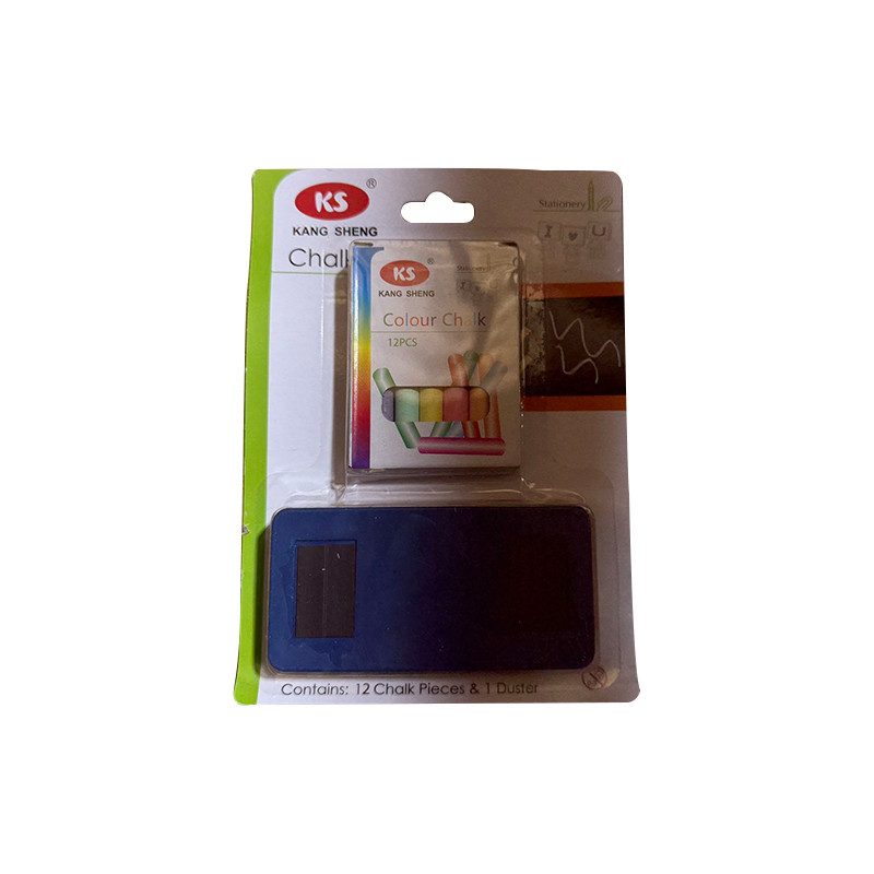 12pcs Coloured Chalk Sticks and 1pcs Duster.