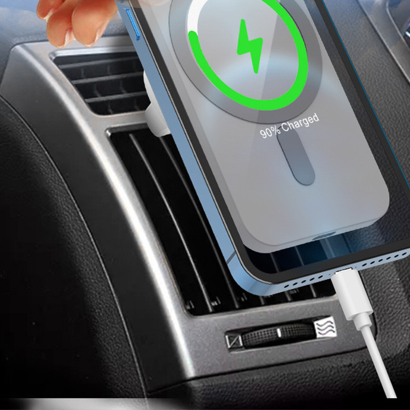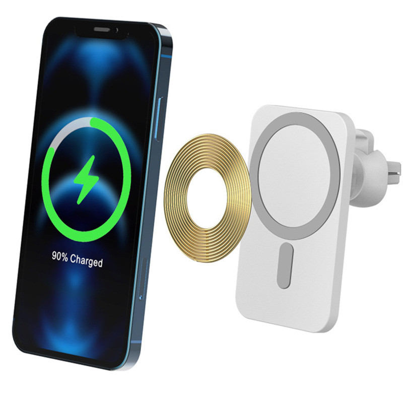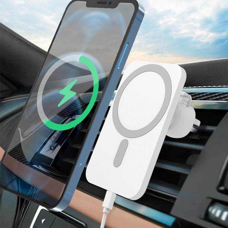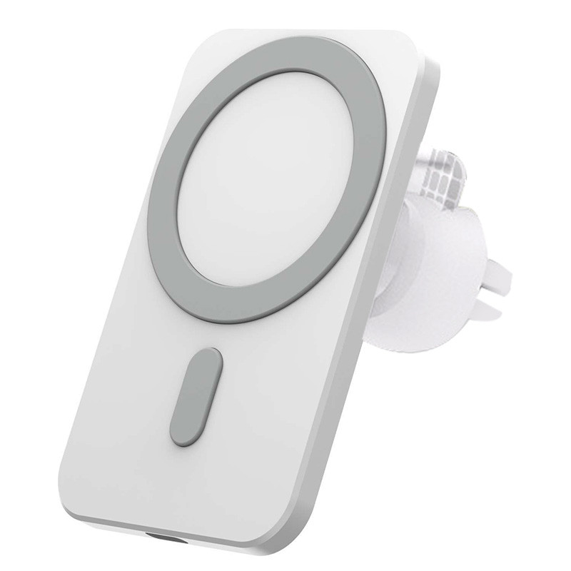 15W Mag-safe Air Vent Car Mount Magnetic Wireless Car Charger for iPhone 12/13/14 Series - White.