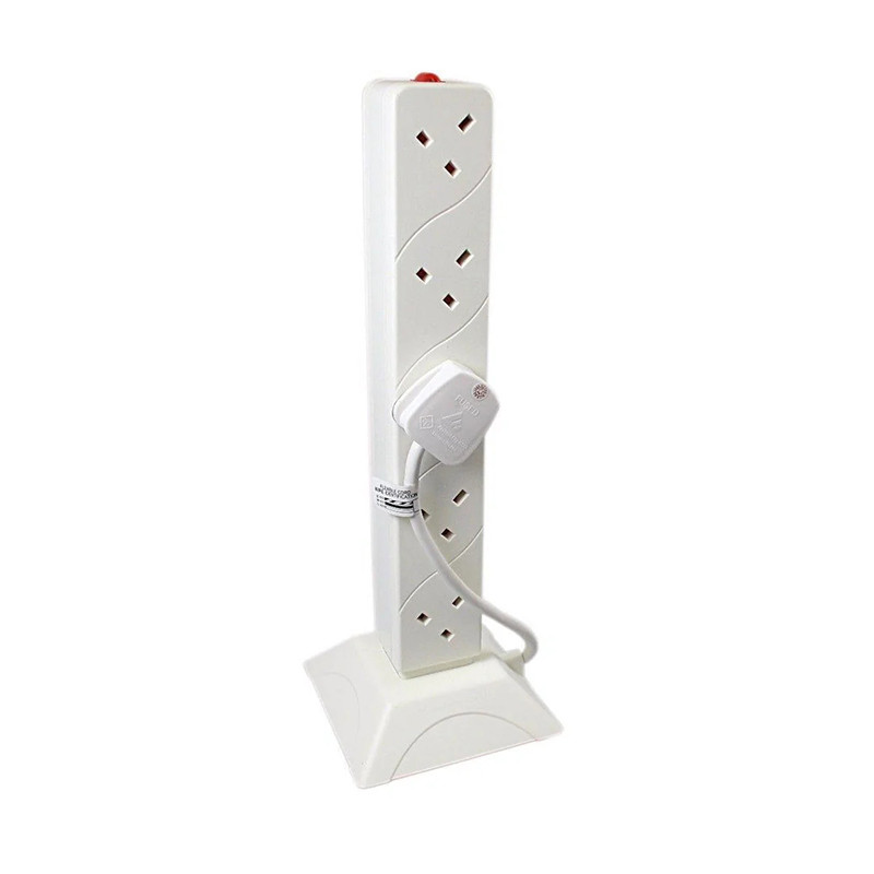 2m 10 Way Mains Power Tower Extension Socket Multi Plug Splitter Adapter Standing UK 3 Pin Lead with Base.