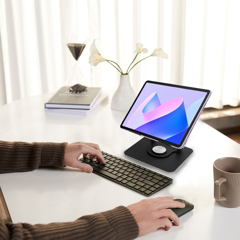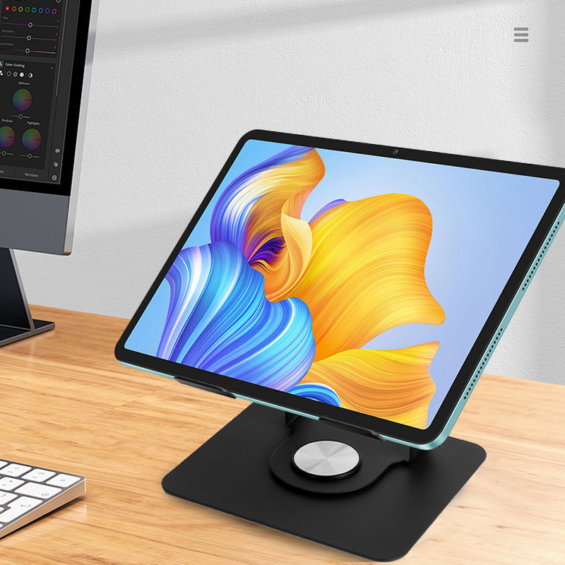 360-degree Rotation Metal Portable Laptop Tablet Stand Riser Bracket Adjustable Holder for Desk - Black.