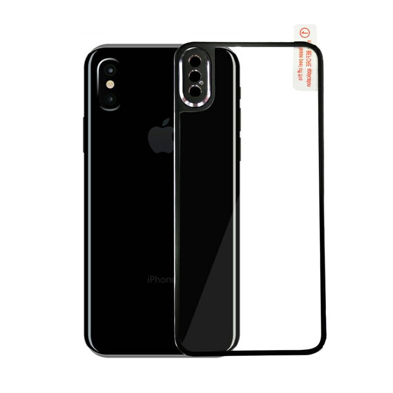 9H Hardness Shockproof 3D Metal Back Tempered Glass Protector Guard for iPhone X/XS - Black