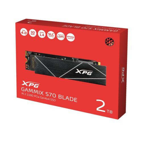 ADATA 2TB XPG GAMMIX S70 Blade M.2 NVMe SSD, M.2 2280, PCIe 4.0, 3D NAND, R/W 7400/6700 MB/s, 750K/750K IOPS, PS5 Compatible, No