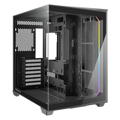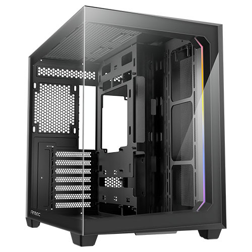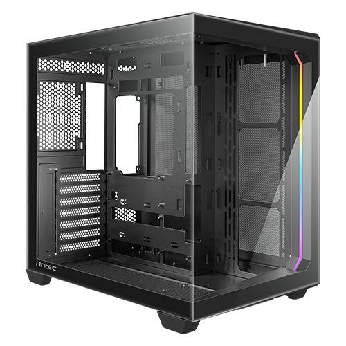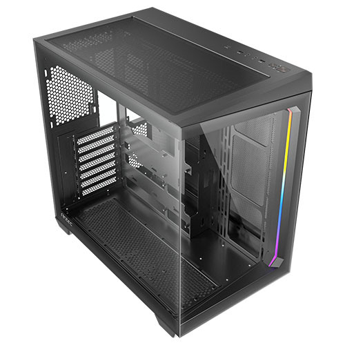 Antec C5 Dual Chamber Gaming Case w/ Glass Side & Front, ATX, No Fans, ARGB Strip, USB-C, Asus BTF Compatible, Black