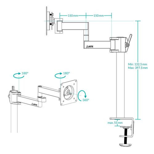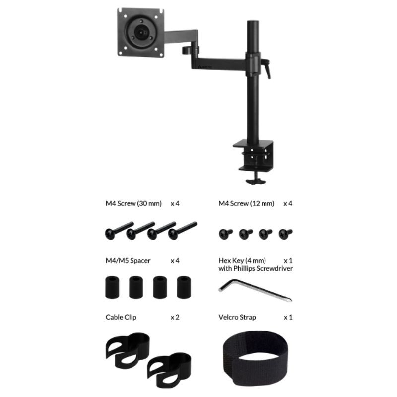 Arctic X1 Single Monitor Arm, Up to 43" Monitors / 49" Ultrawide, 180° Swivel, 360° Rotation