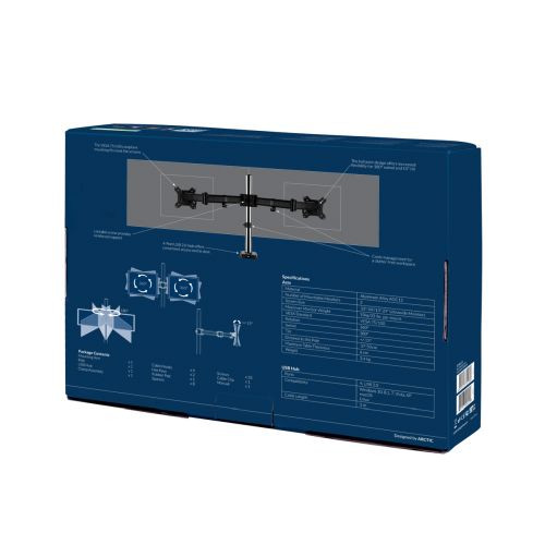Arctic Z2 (Gen 3) Dual Monitor Arm with 4-Port USB 2.0 Hub, Up to 34" Monitors / 29" Ultrawide, 180° Swivel, 360° Rotation