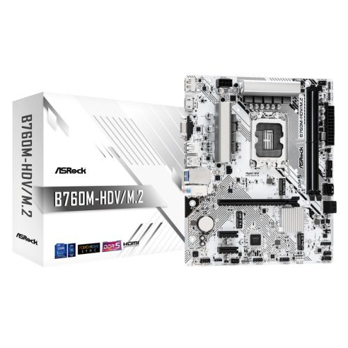 Asrock B760M-HDV/M.2, Intel B760, 1700, Micro ATX, 2 DDR5, VGA, HDMI, DP, 2.5G LAN, PCIe4, 2x M.2