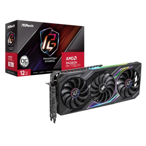 Asrock RX7700 XT Phantom Gaming 12GB OC, PCIe4, 12GB DDR6, HDMI, 3 DP, 2599MHz Clock, RGB, Overclocked