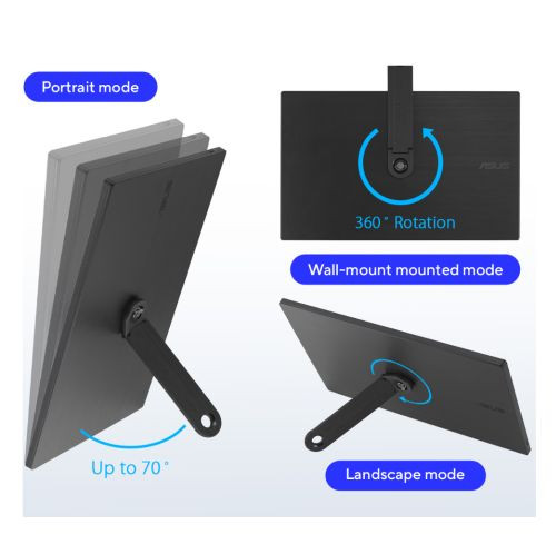 Asus 15.6" Portable IPS Monitor (ZenScreen MB166CR), 1920 x 1080, 60Hz, USB-C, Auto-Rotate, 360° Degree Kickstand