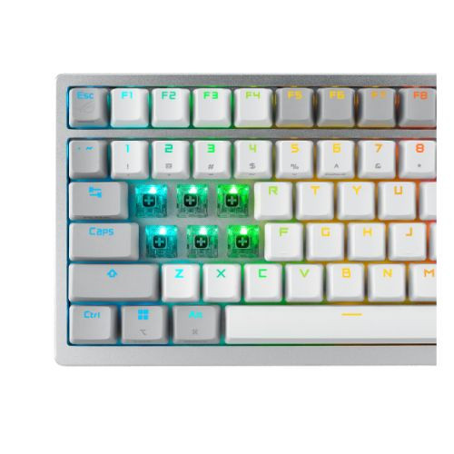 ROG NX Snow mechanical switches utilize composite POM material for the stem with PC top housing and POM bottom housing to provide ultra smooth keystrokes, and the walled stem design enhances stability and prevents dust intrusion. Special tuning is also done, coupled with factory pre-lubing, to give the ROG NX Snow keystroke a very solid and clean sound, with “thocky” acoustics.