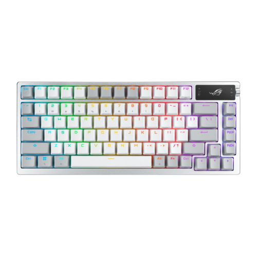 ROG Azoth is a 75% gaming keyboard bristling with DIY features traditionally found on premium custom keyboards. A metal top cover with silicone gasket mount and three-layer dampening, hot-swappable, pre-lubed ROG NX mechanical switches and keyboard stabilizer, ROG PBT doubleshot keycaps and bundled switch lube kit combine to create unprecedented typing experiences. ROG Azoth also has an OLED display with intuitive controls, versatile tri-mode connectivity with SpeedNova wireless technology in 2.4 GHz mode, three adjustable tilt positions, and MacOS support.