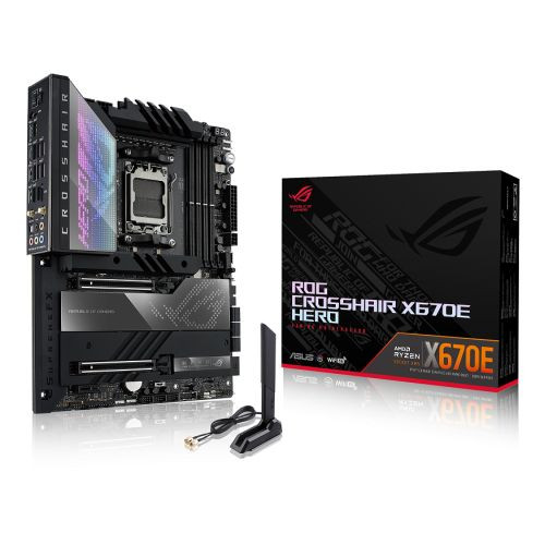 Asus ROG CROSSHAIR X670E HERO, AMD X670, AM5, ATX, 4 DDR5, HDMI, 2 USB4, Wi-Fi 6E, 2.5G LAN, PD 3.0 60W, PCIe5, RGB, 5x M.2