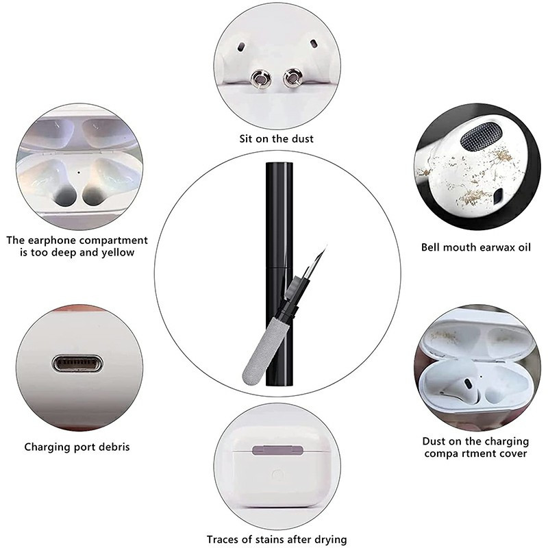 - Efficient Cleaning: A pen to clean the whole set of Bluetooth earbuds, from the small holes of earbuds to the charging bin, 360 degrees cleaning without dead corner.Make your earbuds last longer.