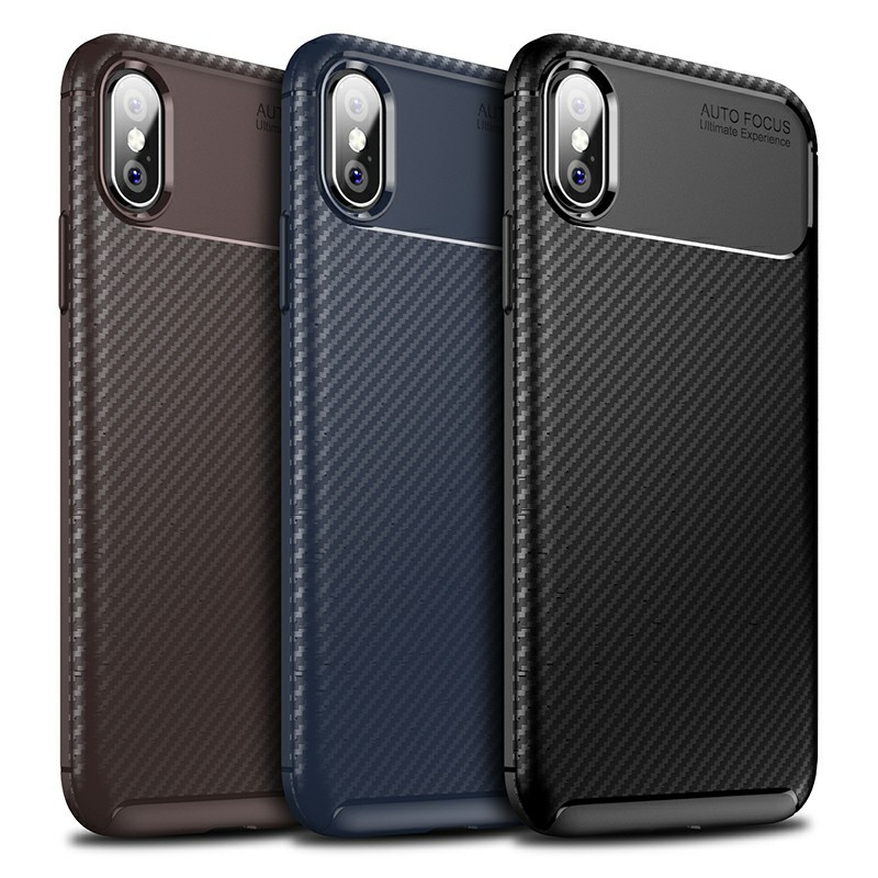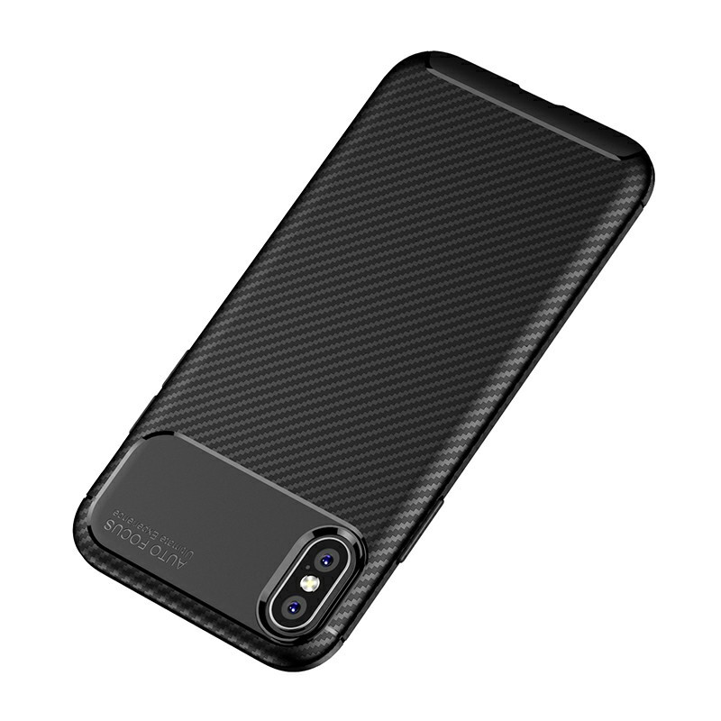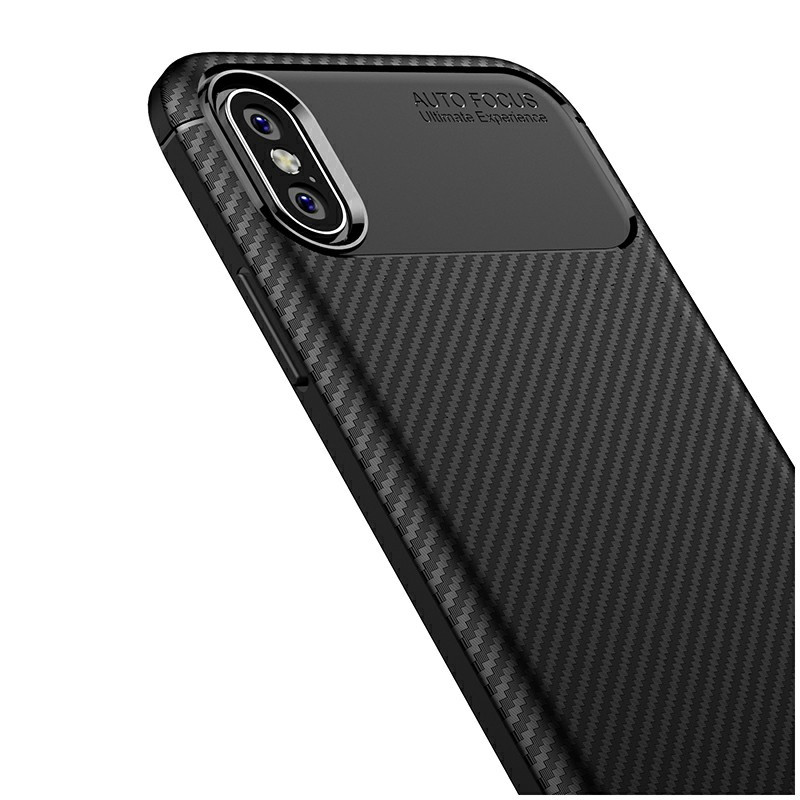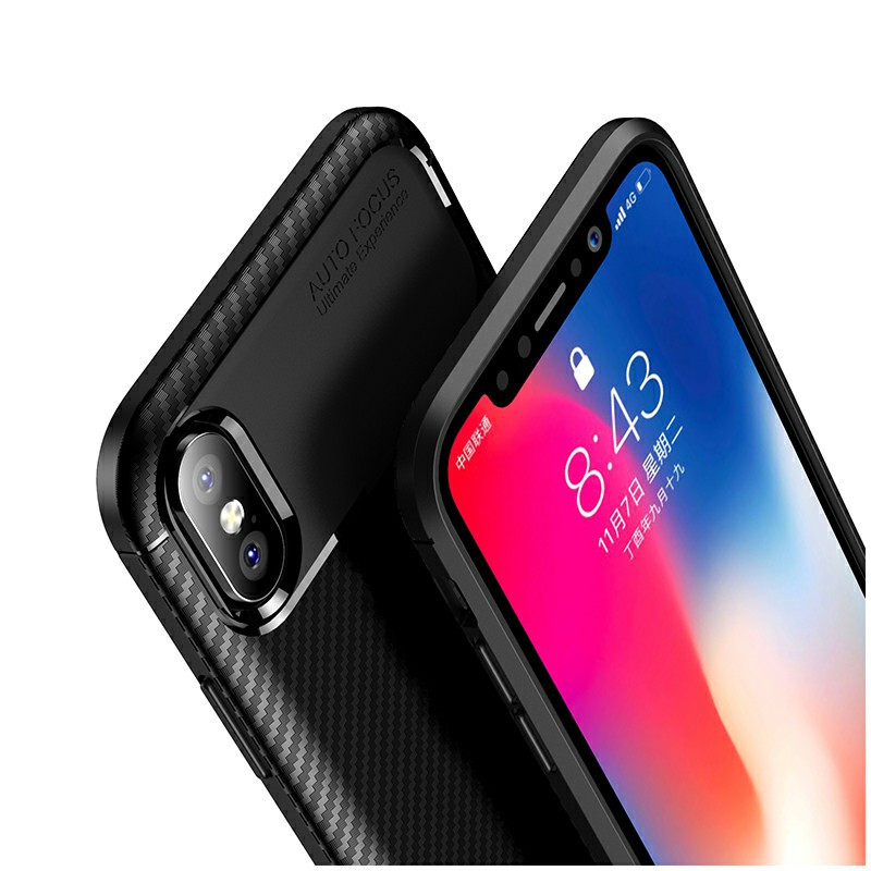 Carbon Fibre Soft TPU Silicone Slim Case Back Cover for iPhone X/XS - Black