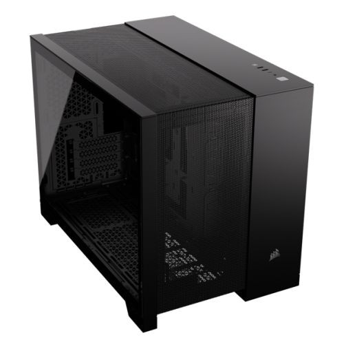 Corsair 2500D Airflow Dual Chamber Gaming Case w/ Glass Window, Micro ATX, Fully Mesh Panelling, USB-C, Asus BTF Compatible, Bla