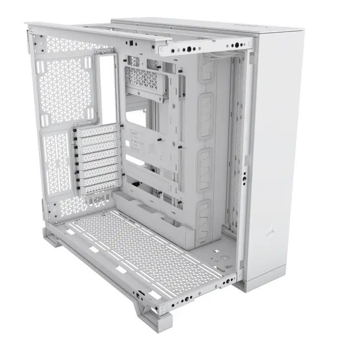 Corsair 6500X Dual Chamber Gaming Case w/ Glass Side & Front, ATX, Mesh Panels, USB-C, Asus BTF Compatible, White