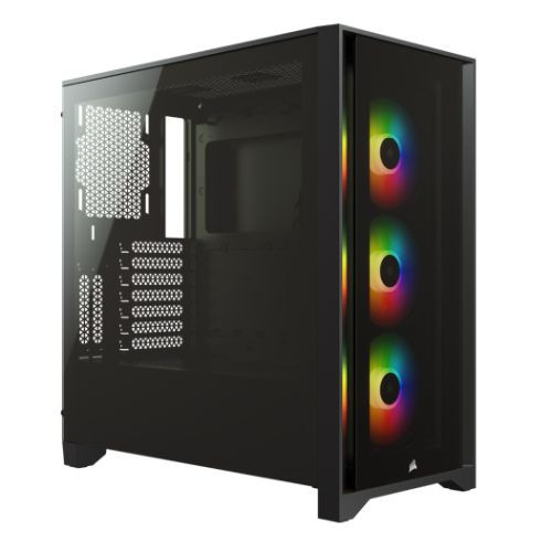 Corsair iCUE 4000X RGB Gaming Case w/ Tempered Glass Window, E-ATX, 3 x AirGuide RGB Fans, Lighting Node CORE included, USB-C, B