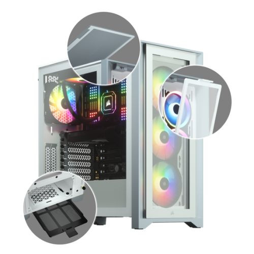Corsair iCUE 4000X RGB Gaming Case w/ Tempered Glass Window, E-ATX, 3 x AirGuide RGB Fans, Lighting Node CORE included, USB-C, W